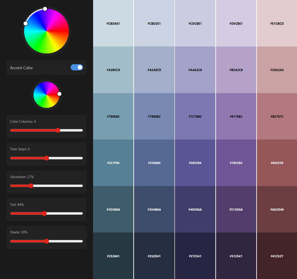 is a free, professional color palette tool built for UI designers, brand strategists, and visual creators who value consistency and control. Rather than relying on random color generation, the tool allows users to define a focused hue range and generate structured tonal scales using adjustable tint, shade, saturation, and tone steps. This approach makes it easy to build harmonious, accessible color systems suitable for modern web and interface design. Palette Architect provides instant hex code output and responsive visualization, helping designers move quickly from exploration to implementation.